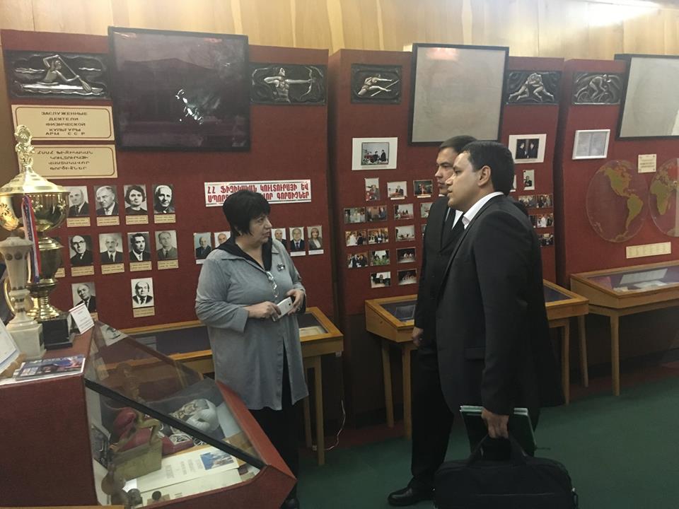 Далее гости встретились с руководителем Международного и научно-информационного центра Анжелой Нушикян, с деканом Спортивной педагогики и менеджмента Гагиком Саргсяном.